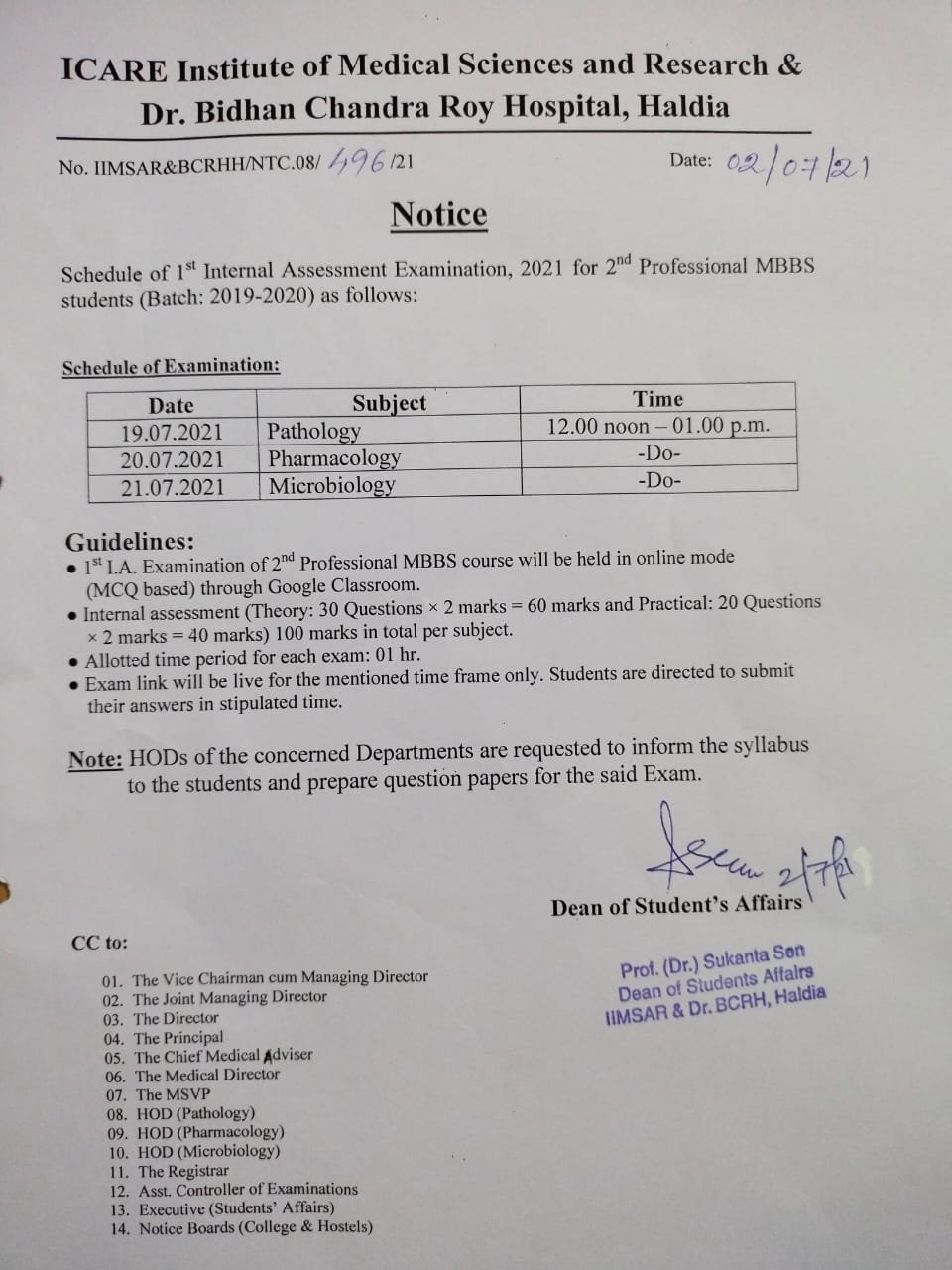 ICARE Institute of Medical Sciences and Research and Dr. Bidhan Chandra Roy Hospital, Haldia (IIMSAR & BCRHH) was established with a view to create at Haldia a modern education centre as well as health care facilities of excellence to provide value based educational & health service of International standard with a motto to march ahead to build an ideally developed Haldia. In view of the noble objectives of the Institute, it gets support from the people, local Municipal Authorities, Haldia Development Authority as well as from the industrial and business houses in and around Haldia.